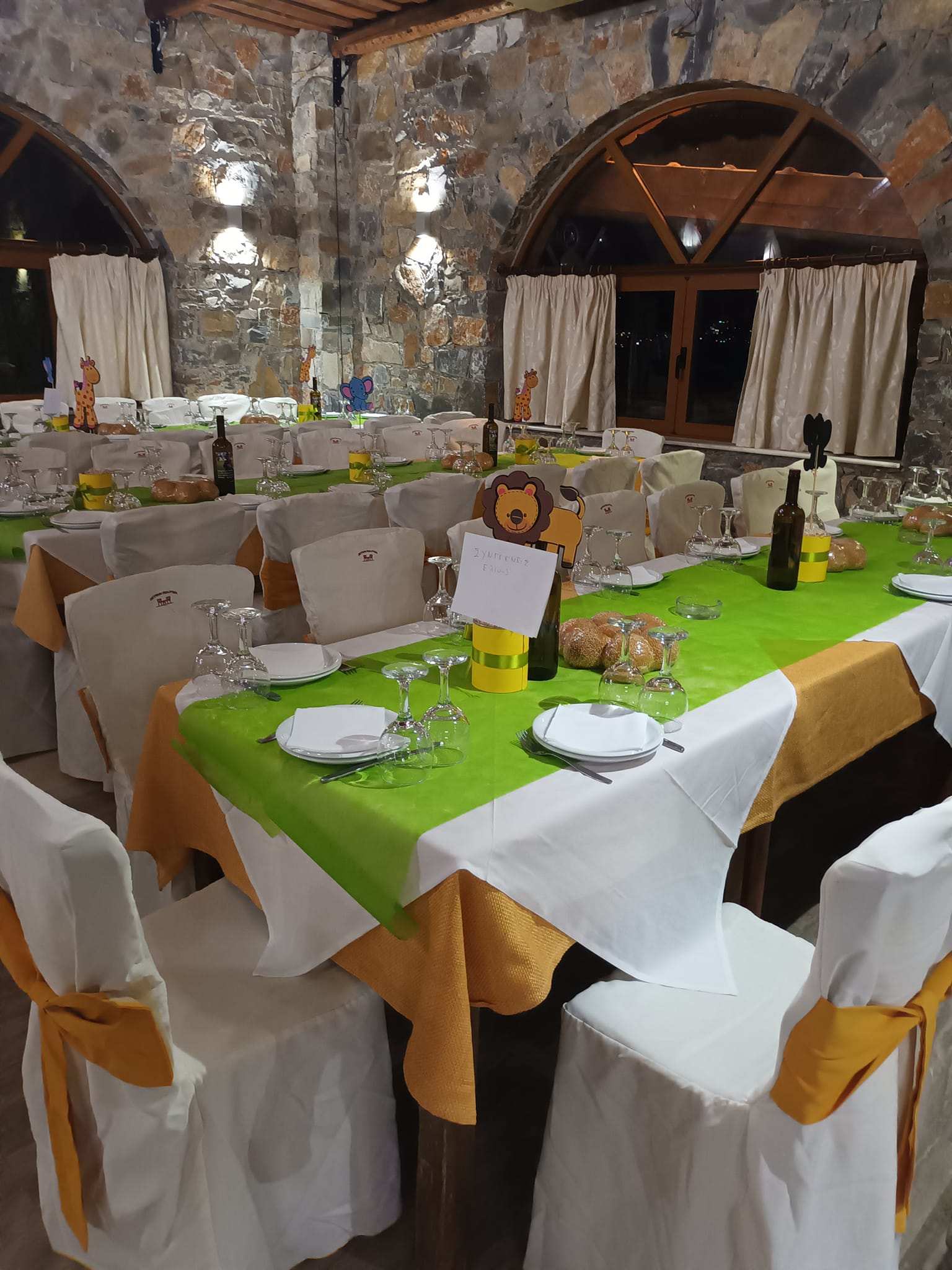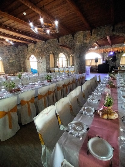 Οι μεγάλοι εξωτερικοί χώροι, το πράσινο και η ανοιχτή θέα δημιουργούν το τέλειο σκηνικό για καλοκαιρινές δεξιώσεις, ενώ ο παραδοσιακός εσωτερικός χώρος με πέτρα, ξύλο και τζάκι είναι ιδανικός για χειμερινές συγκεντρώσεις. Η διακόσμηση μπορεί να προσαρμοστεί στο ύφος και στα χρώματα που επιθυμείτε, ώστε ο χώρος να αποπνέει τη γλυκύτητα και τη χαρά της συγκεκριμένης ημέρας.